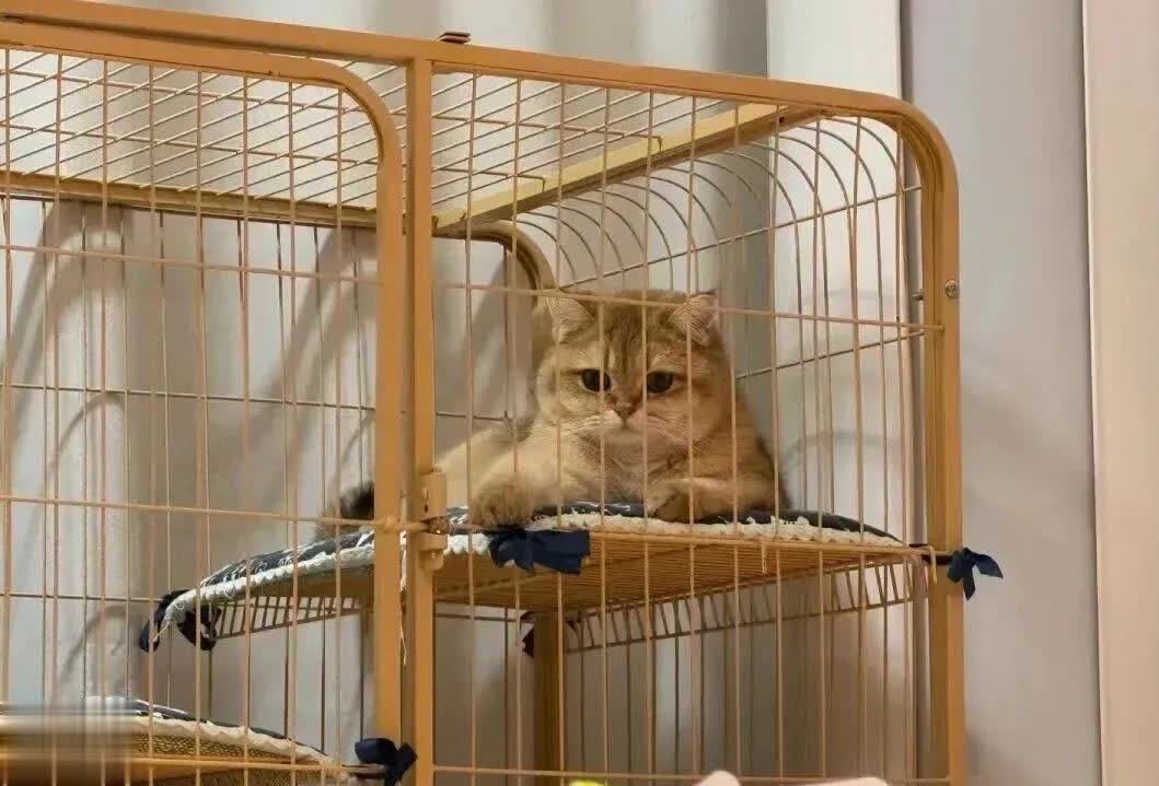 怕猫咪在家有危险,咱们把家里的窗户装上网、阳台做好防护就行,没必要把它关在笼子里,让它在屋里自由活动多好啊。