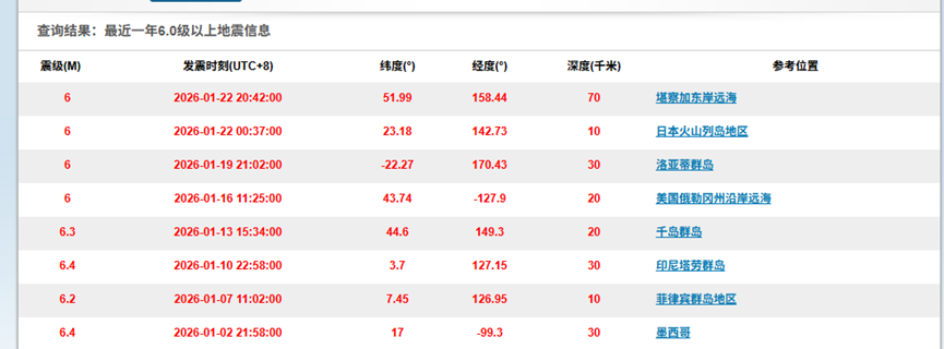 2026年年初的地震,大多集中在环太平洋地震带这一传统地震高发区,且未出现8级以上特大地震,也未呈现全球范围内地震活动普遍增强的趋势,因此无需过度解读为“地震频发”的信号,地震活动的研判需结合长期时间尺度和全球地质构造整体情况。